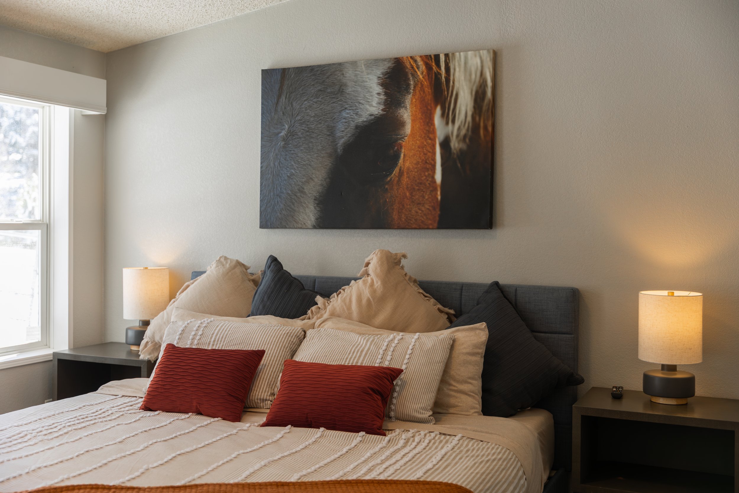 Watch horses playing and eating outside your windows.