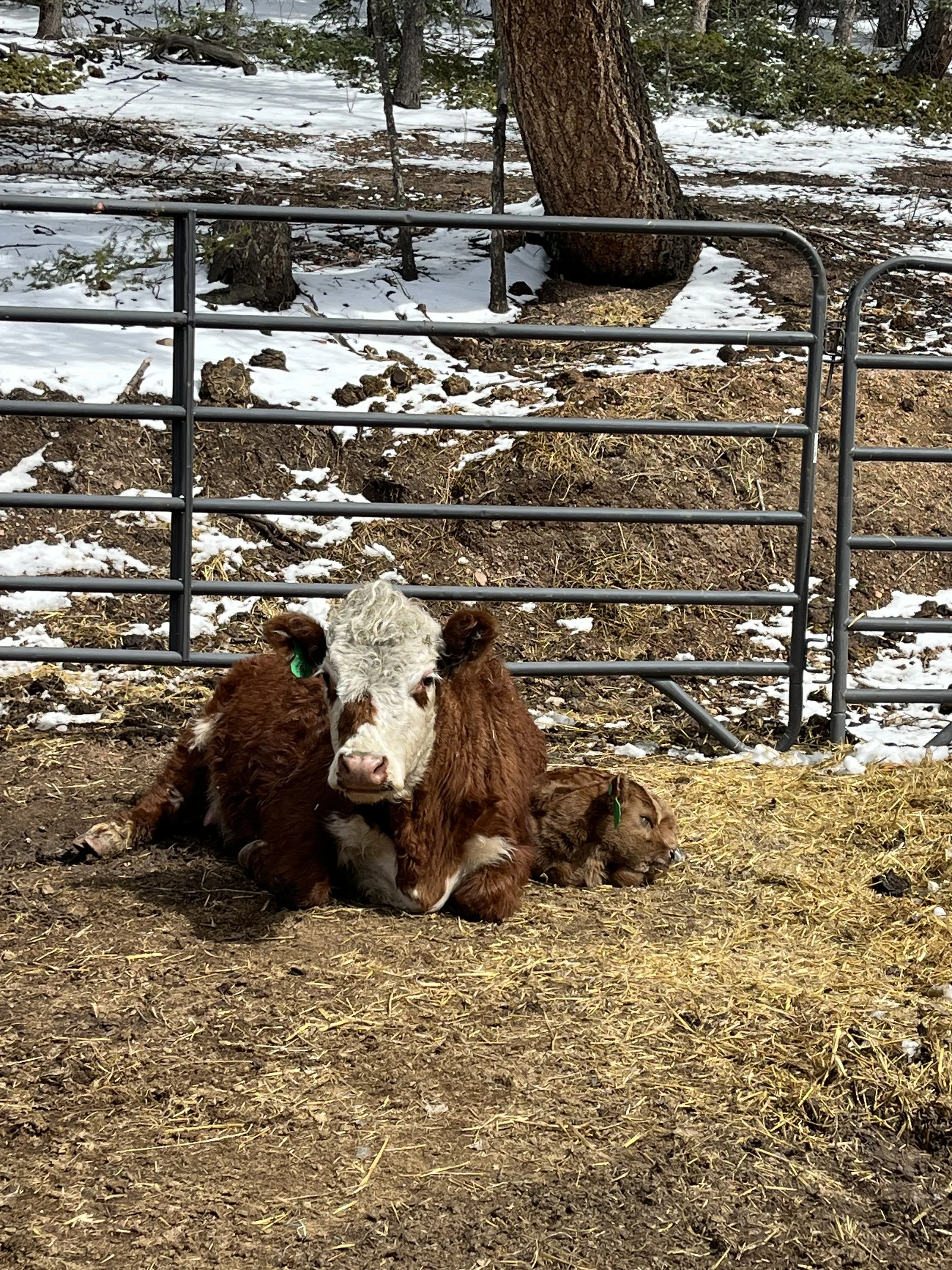 Susie is a 3 year old miniature Hereford. She one of our smallest mommas but has always calved on her own just fine. She has been exposed to Romeo, our mini Highland bull since June and is presumed pregnant.