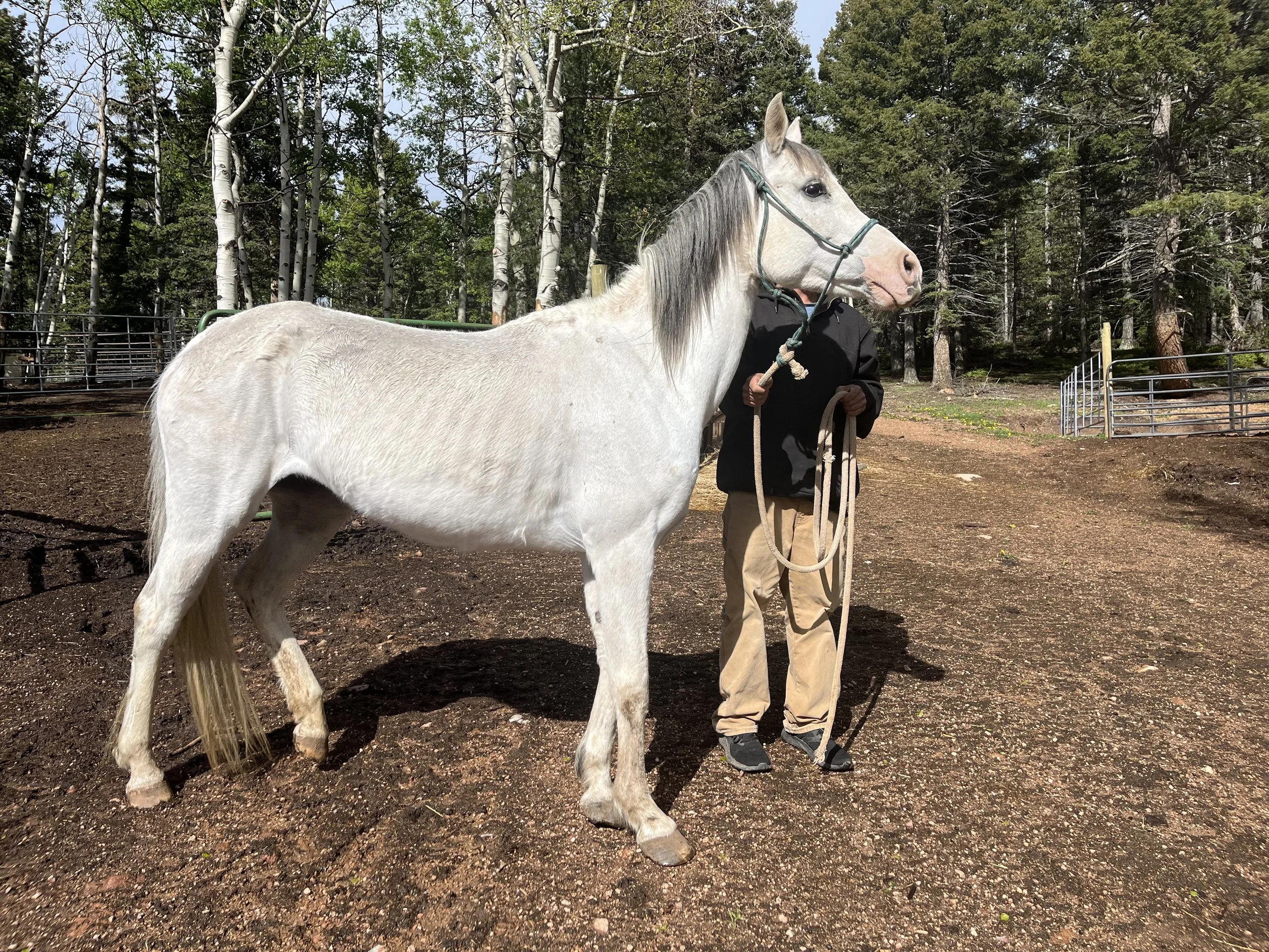 Cricket is a 6 year old Arabian mare who looks to have had a pretty rough start to her life. She comes to us with signs of some previous injuries, but appears to be living comfortably despite the scars and bumps. So far Cricket seems to be pretty friendly and calm, but we still need to evaluate her training level and learn her personality better. As she progresses through training, we will also be keeping a close eye on her old injuries to make sure that she is staying sound and is capable of continuing to progress.